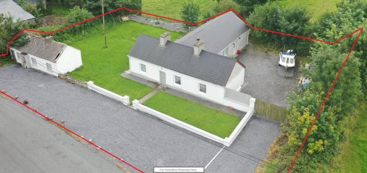 This marvellous 3 bed home has been tastefully extended and renovated. The style is Modern- Country, both in the original cottage and the extension. The extension has provided the larger spaces needed for modern living including a third double bedroom and a great house bathroom. Modern laminate flooring has been installed in most areas. This property has a great living area (the central room in the old cottage enjoying a solid fuel stove) and a very large and separate Kitchen and Dining area. The location is rural but within 5 minutes of Elphin and 12 of Carrick on Shannon. The area is dotted with lakes and country lanes, ideal for those who enjoy walking and country pursuits. Outside there is a garden which enjoys sun throughout the day and on the right side of the property is an area suitable for parking boats or recreational vehicles. In addition, there is a useful older outbuilding suitable for storage or for the hobbyist. For those looking for a spacious and tastefully finished country home this is a must see.